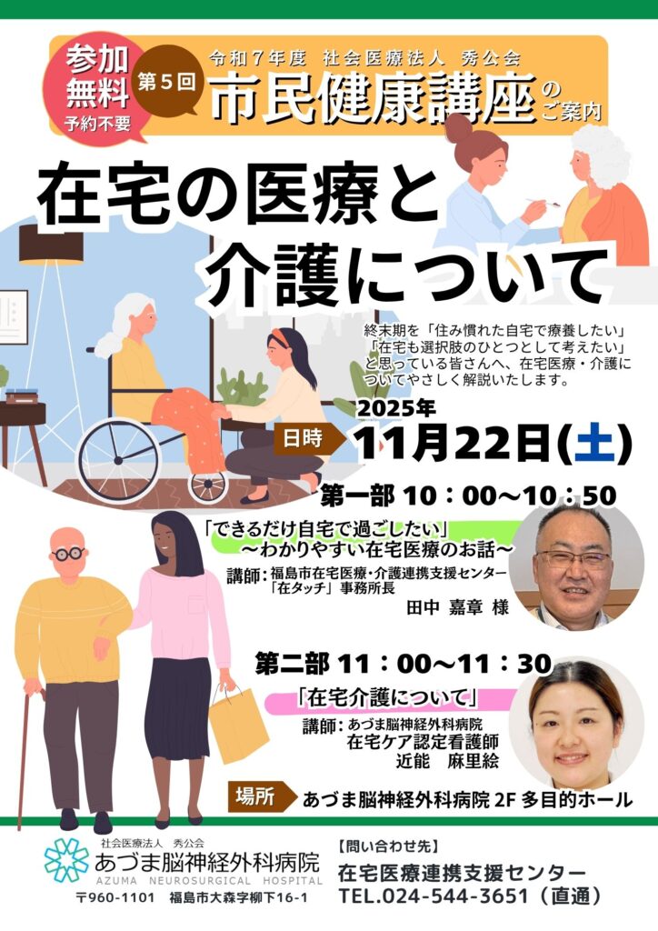 市民健康講座のお知らせ「在宅の医療と介護について」(2025/11/22)