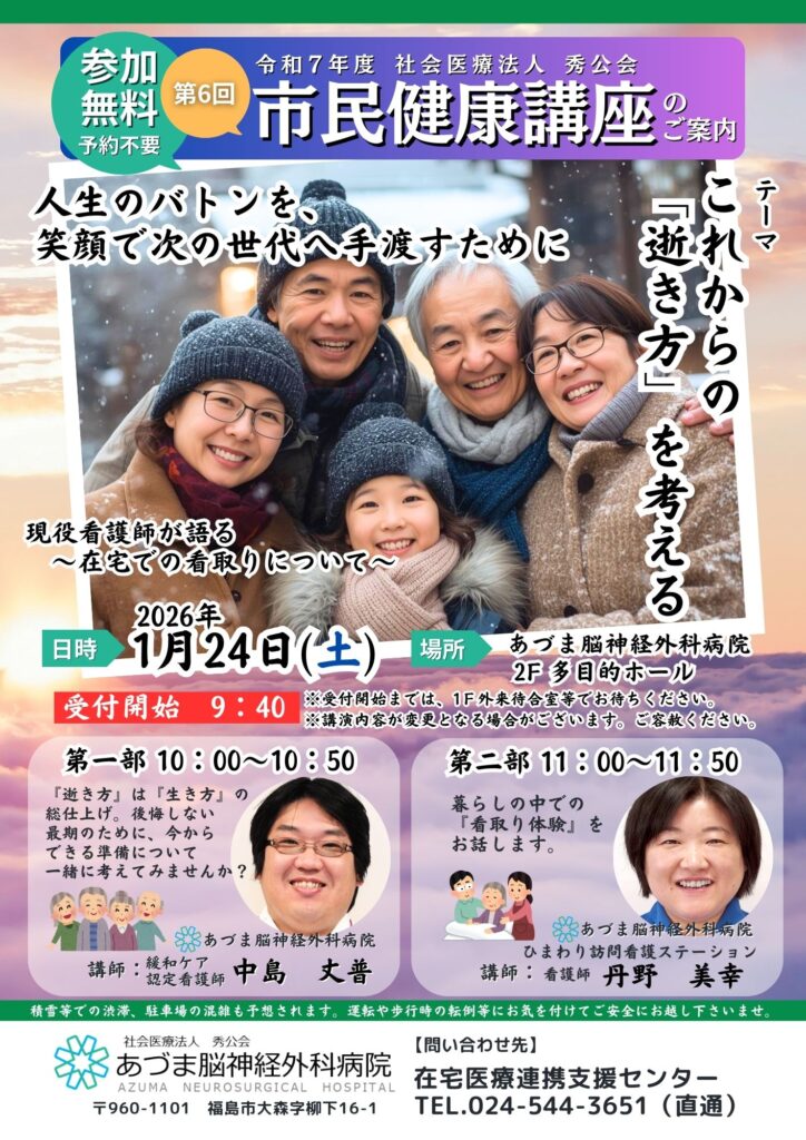 市民健康講座のお知らせ「これからの「逝き方」を考える」(2026/1/24)